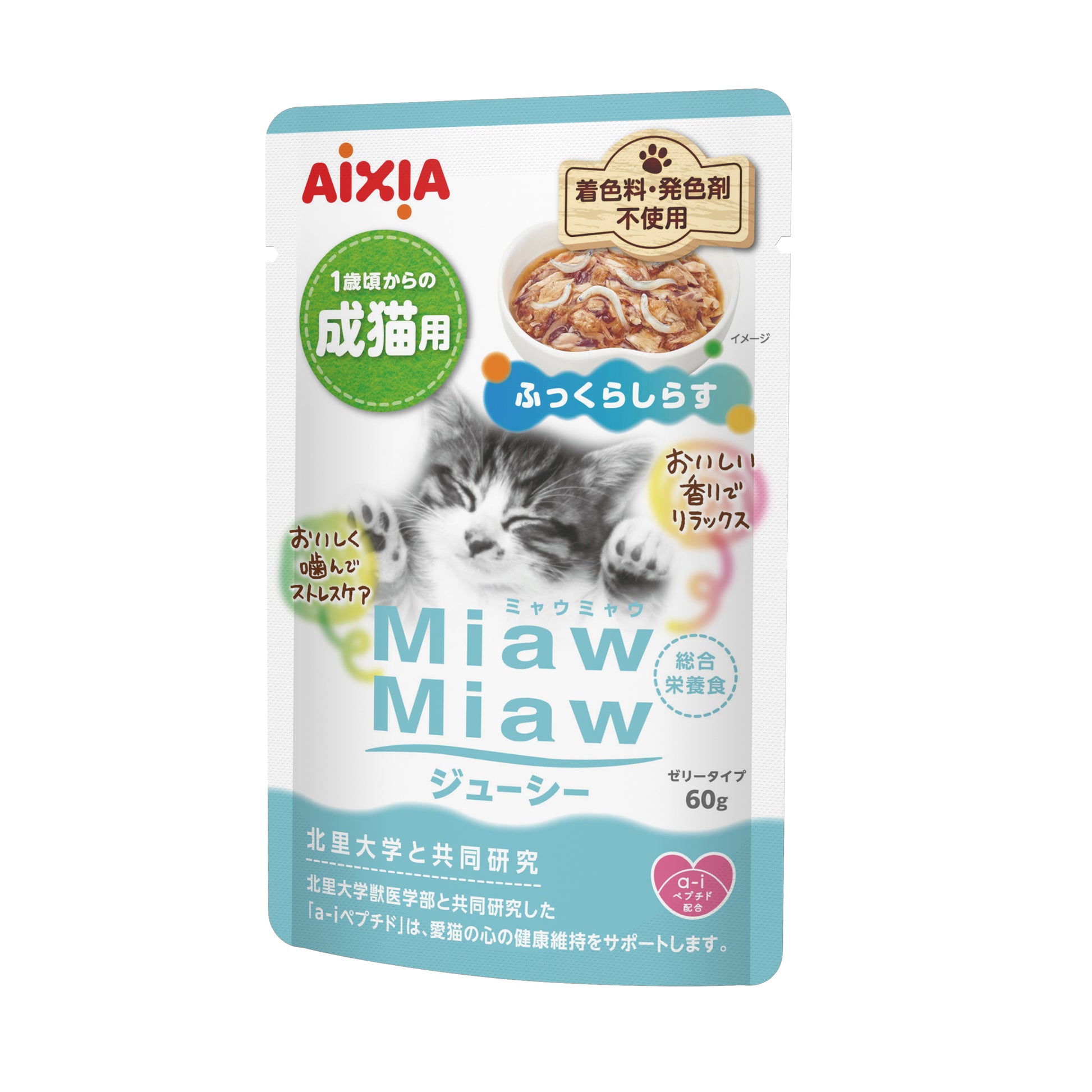 The "ai peptides" developed in collaboration with Kitasato University and the "delicious aroma containing DMHF" help maintain your cat's mental health.