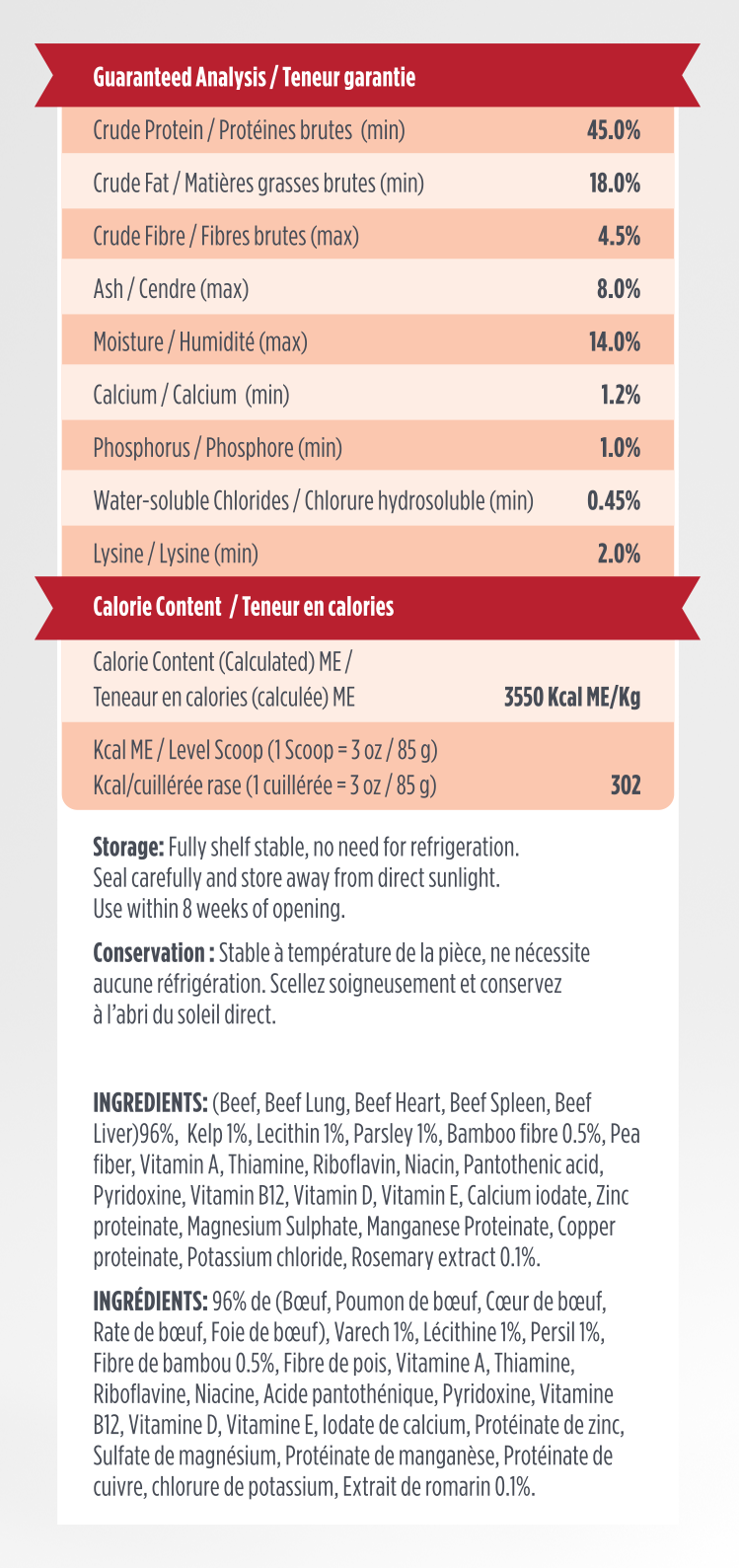 High-Protein, Low-Fat: Made with 96% beef and beef organ meat, our formula provides a rich source of protein while keeping fat content low, supporting lean muscle and overall health.